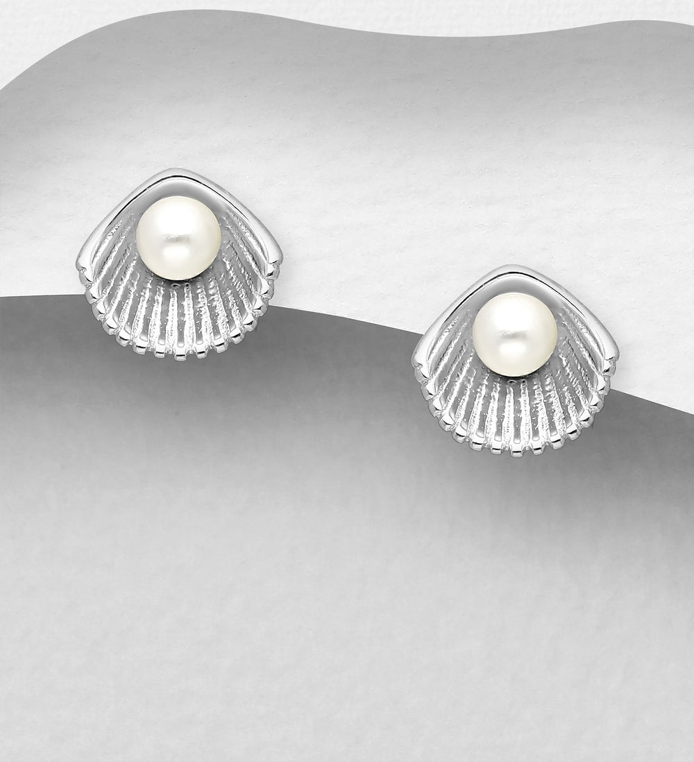 These sterling silver earrings feature a freshwater cultured white pearl.