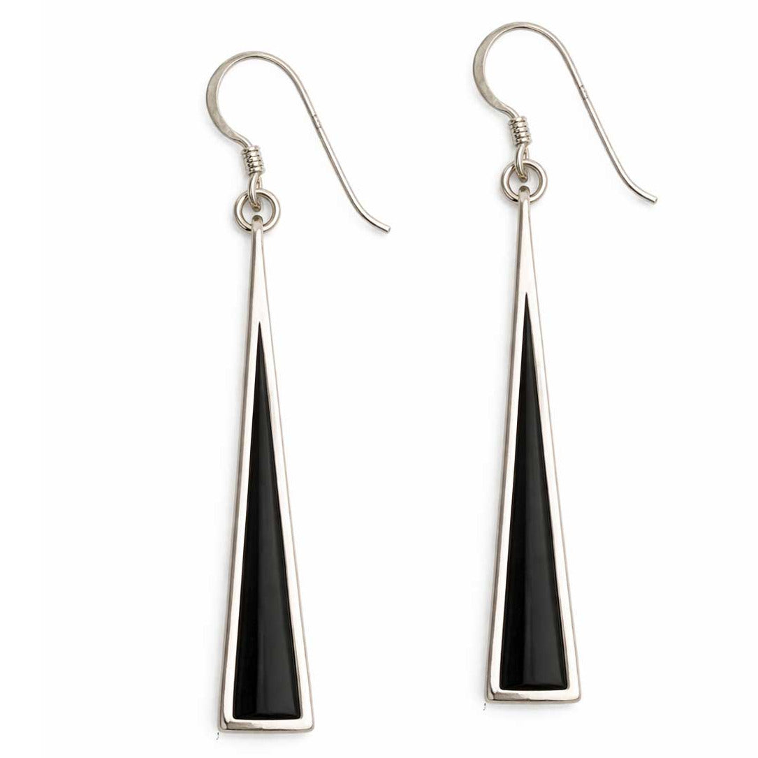 A beautifully balanced pair of earrings combining modern style, rich black onyx, and classic sterling silver elegance.