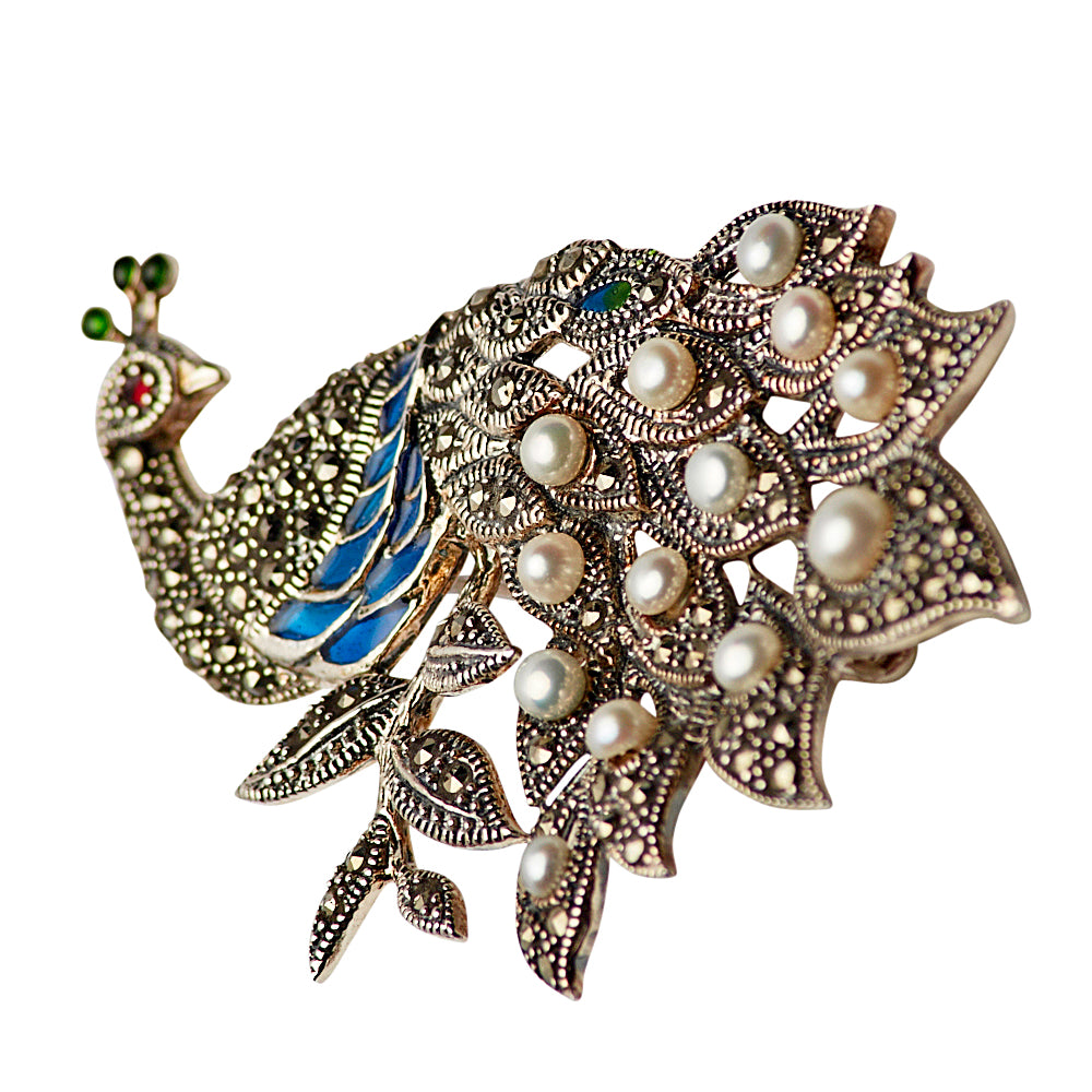Peacock Pearl Silver Brooch