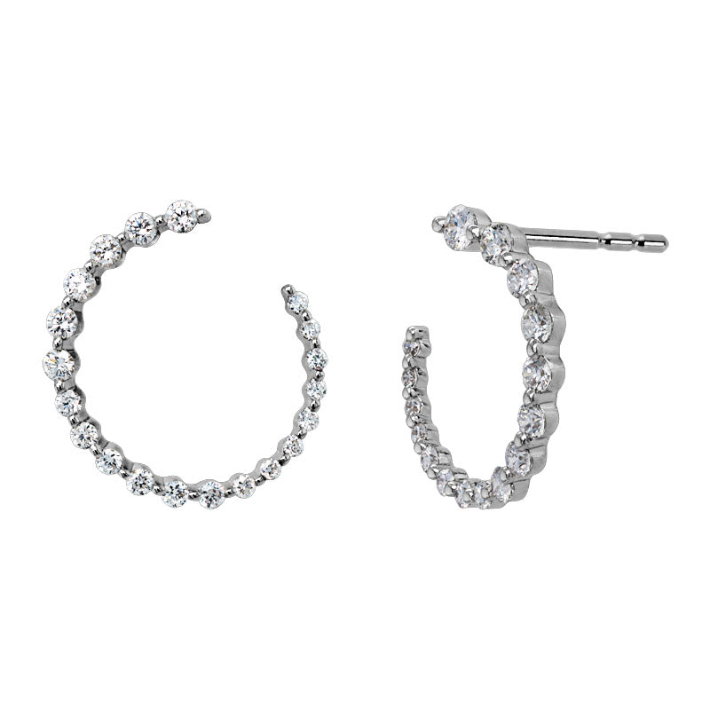 14K Earrings. Partial hoop of graduated diamonds with circle facing forward when worn with slight twist backward. Hoop drops from post with butterfly back. 16.5mm (length) x 16.0mm (width). 40 round full-cut diamonds = .50ct. Prong set.