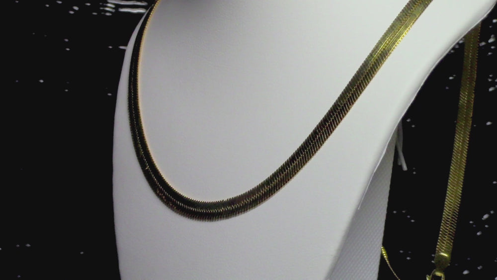 This is an 18K gold over sterling silver Herringbone chain and it comes with a lobster style clasp for added security.