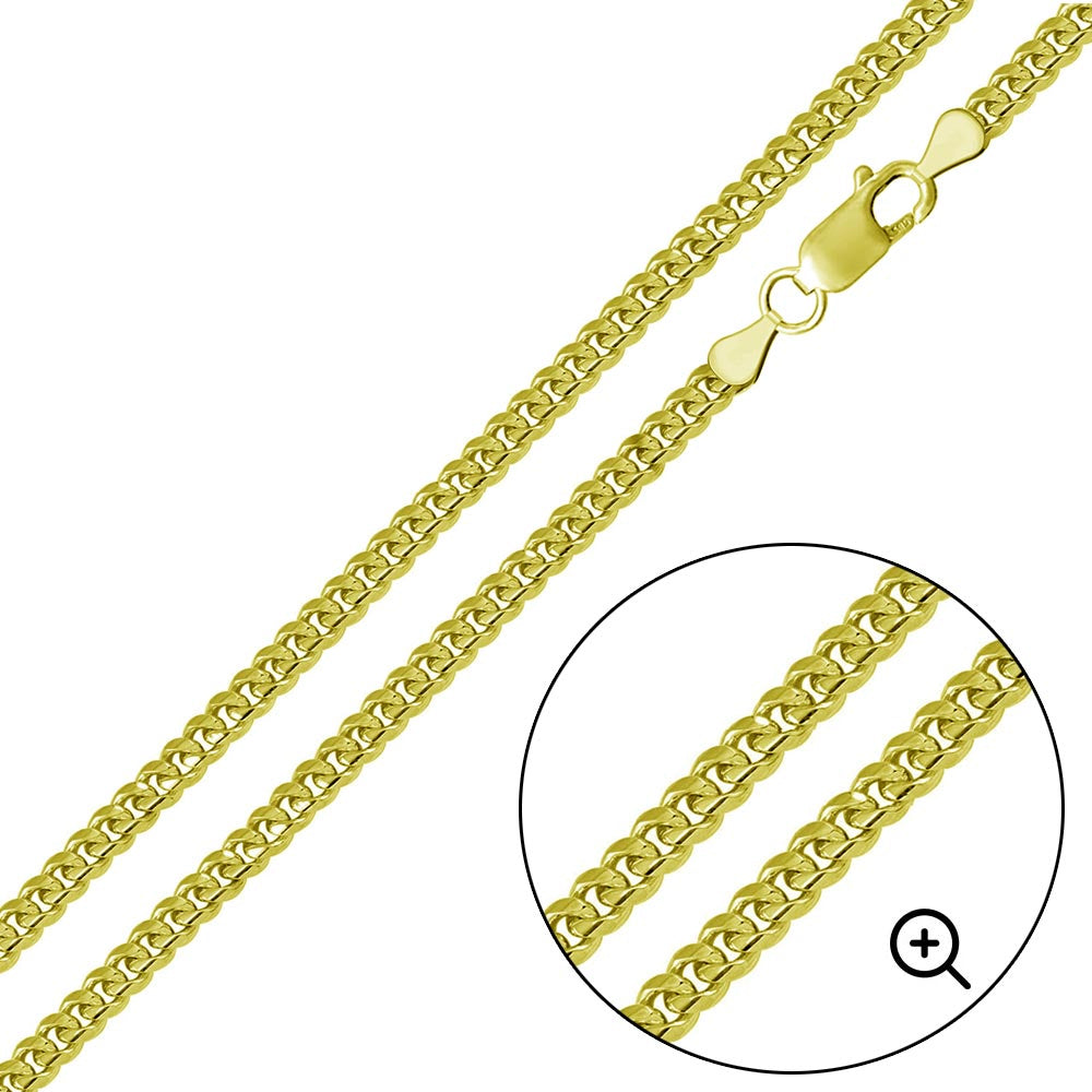This is a 14K gold over sterling silver miami cuban chain and is 3.5 mm wide. It comes with a lobster clasp for added security.