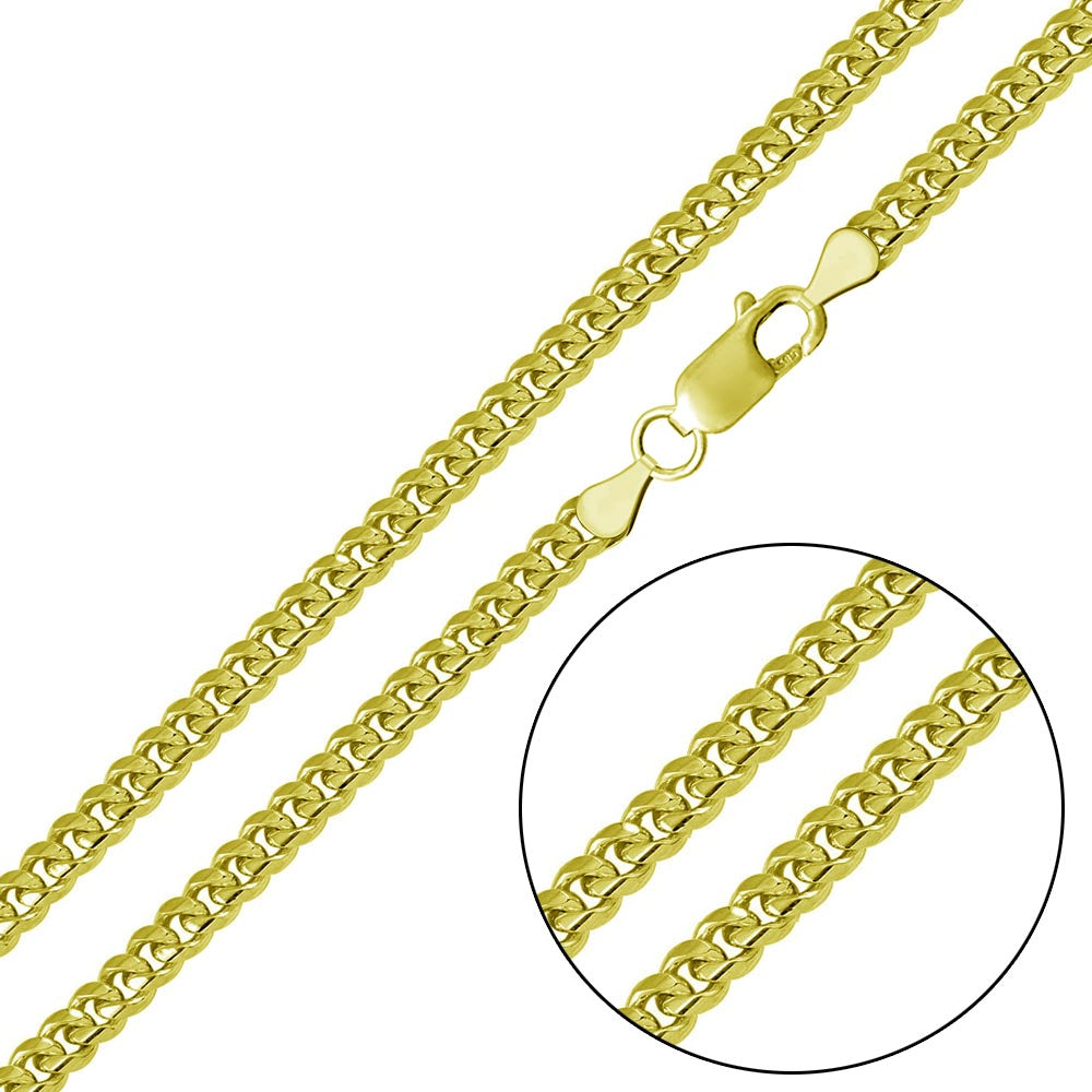 This is a 14K gold over sterling silver miami cuban chain and is 4.9 mm wide. It comes with a lobster clasp for added security.