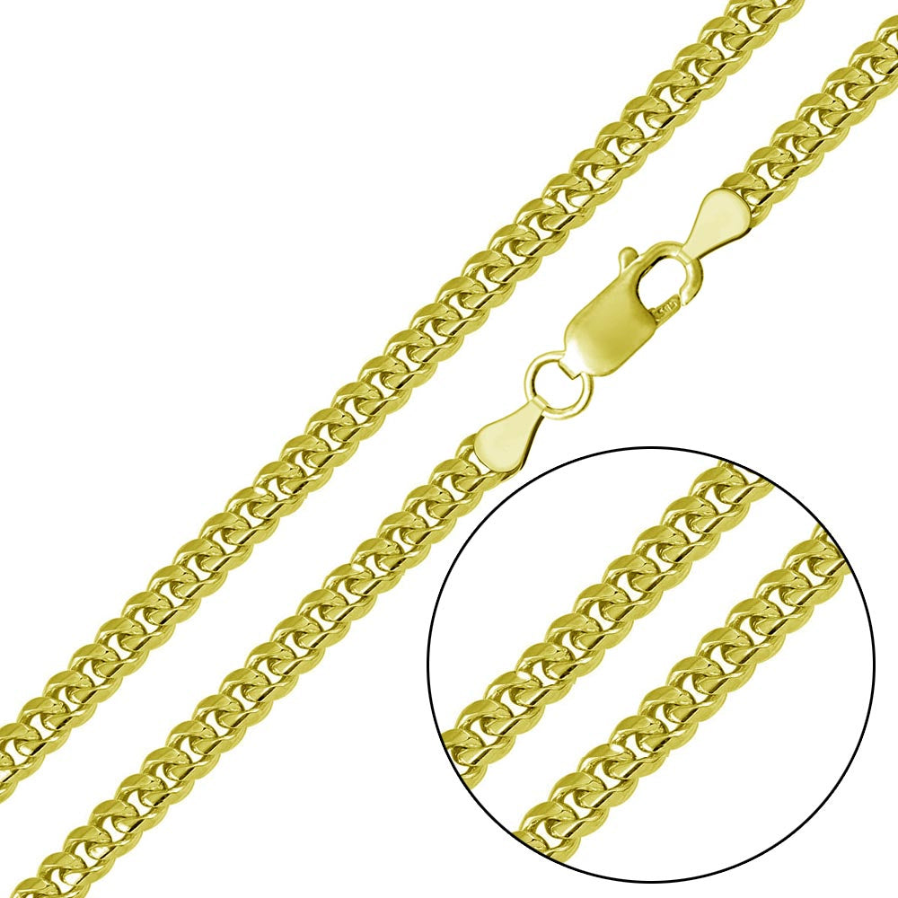 This is a 14K gold over sterling silver miami cuban chain and is 6.3 mm wide. It comes with a lobster clasp for added security.