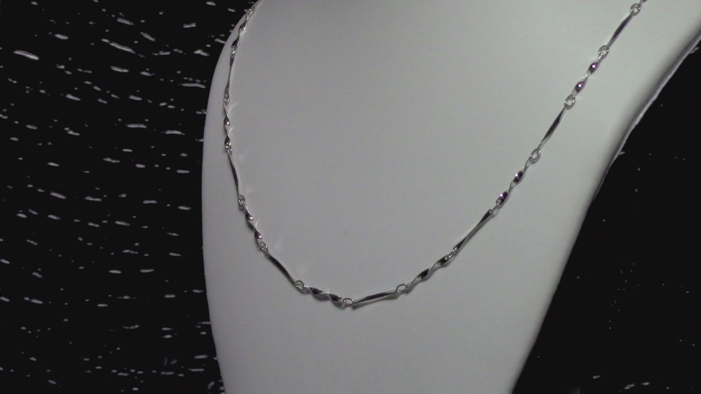 In this chain; links are visible in the design, but they have been twisted into a more dimensional shape. The twist adds an intense sparkle and an excellent fluidity.