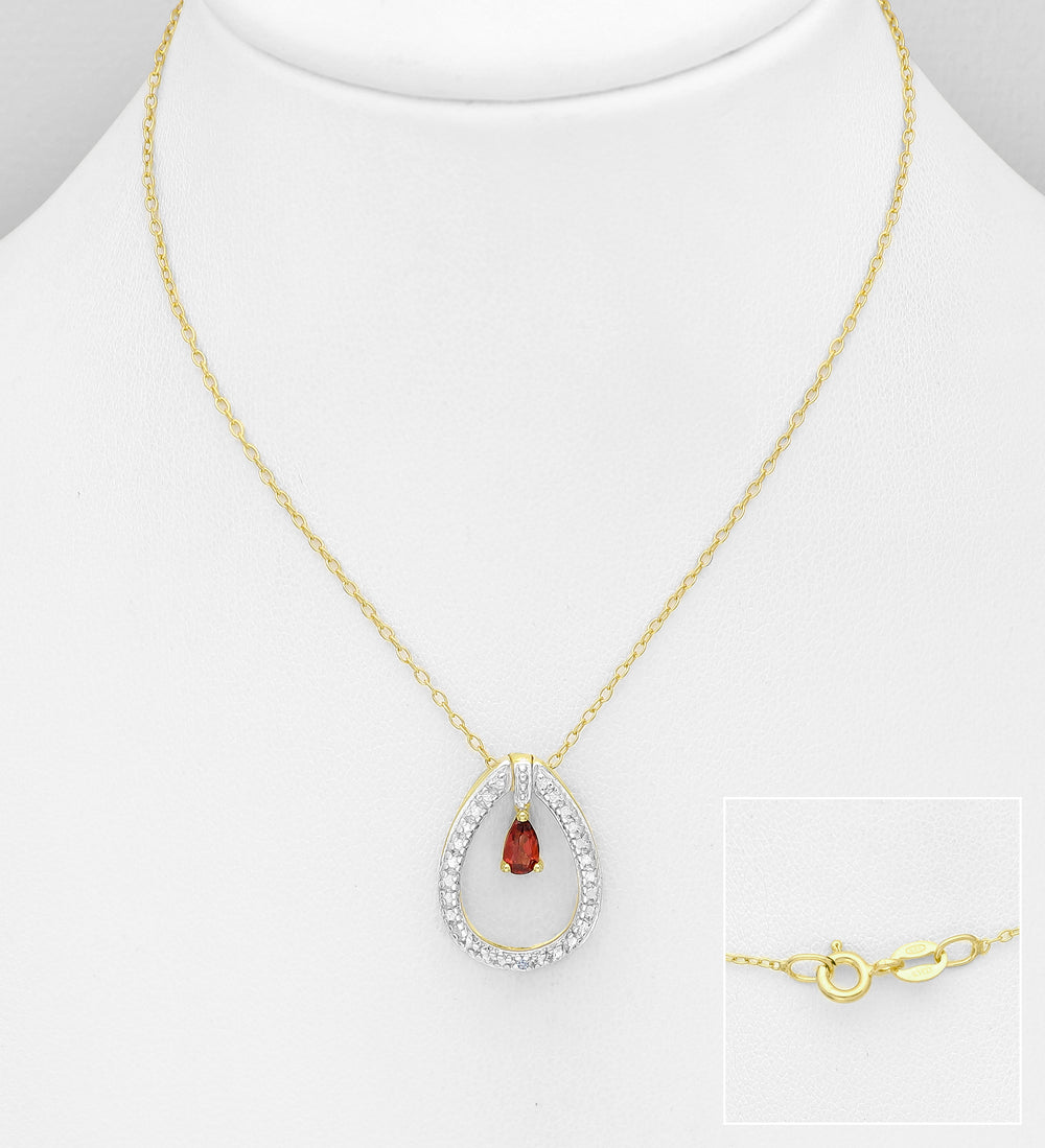 The necklace is made in 14K yellow gold over sterling silver with a white diamond accent and features five interchangeable pendant charms. Each charm showcases a precious stone: garnet, peridot, amethyst, sky blue topaz, and blue sapphire. You can change out the center precious stones to create the perfect look for every occasion! This pendant comes complete with chain. Typically ships within 2 -3 business days.