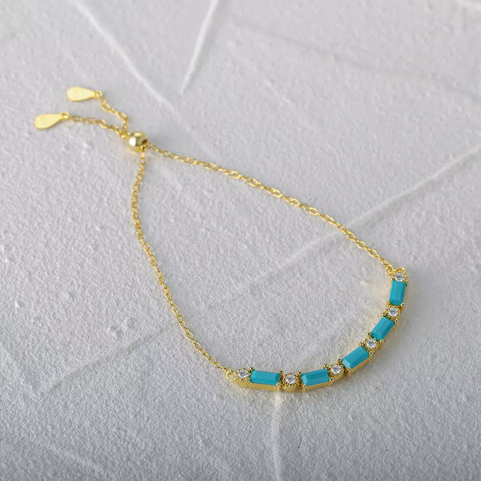 Bracelet features Aquamarine & Diamond Simulants with Gold Plated Sterling Silver