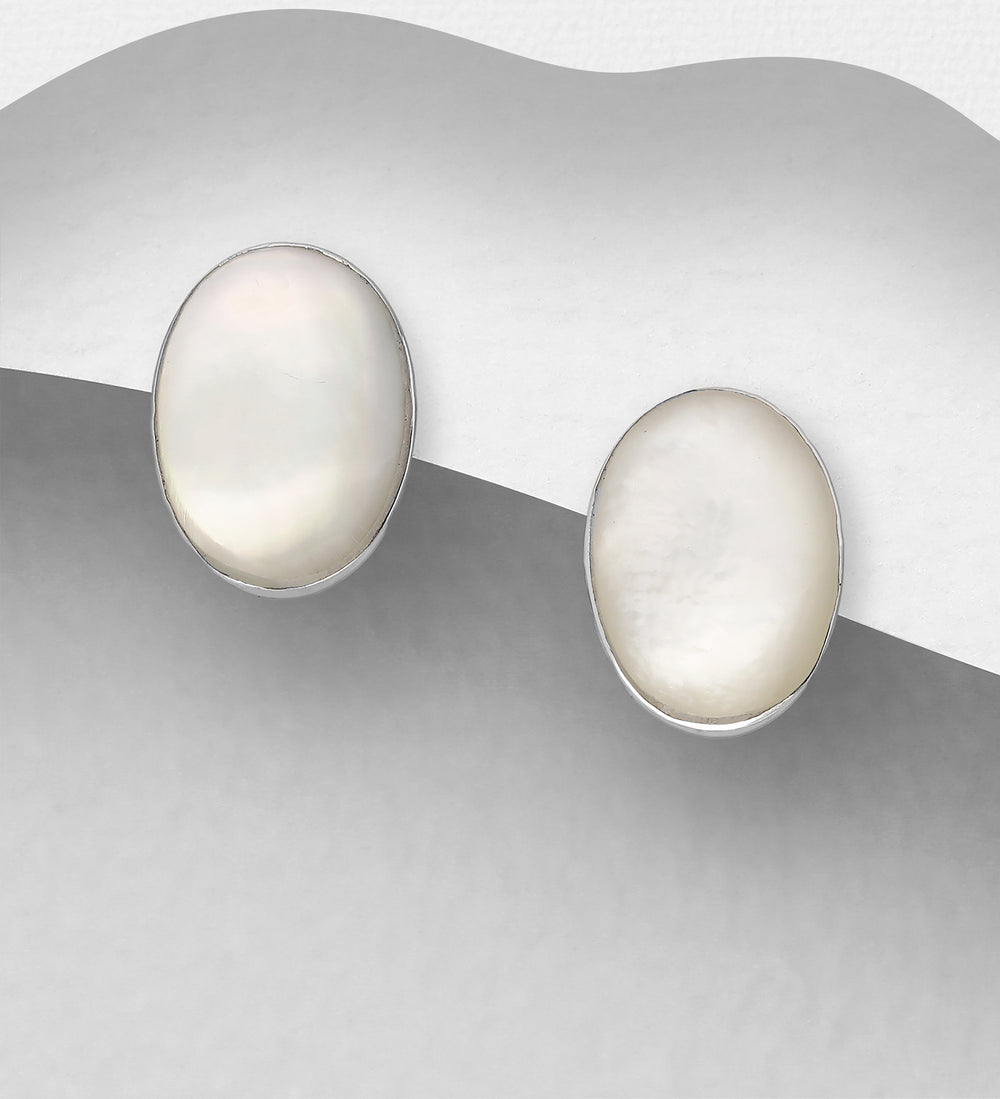 These earrings are made in sterling silver. You can choose abalone or mother of pearl inlay.
