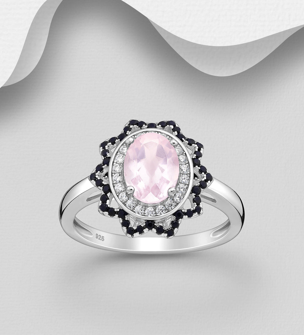 Gemstone: Rose Quartz, Black & White Diamond Simulants